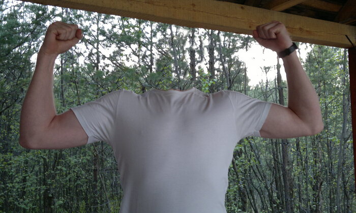 Спустя пол года тренировок я заметил как у меня расправились плечи, стали широкими, раньше они были довольно узенькими. Появилась мужская грудь, косые мышцы спины сформировали нормальную мужскую спину, руки обрели мышцы и стали походить на руки с рельефом я не две прямые тонкие трубы. Ноги стали толще и выглядеть нормально, хотя ниже колена они по-прежнему были тонкими, с этой проблемой мы ещё долго работали. В общем когда я начал понимать что мне что-то удаётся я стал делать уклон на пауэрлифтинг. Тренер начал меня готовить к местным соревнованиям на которых я занимал иногда 2, 3 места. У него я занимался где то три года. Я очень полюбил присед и становую тягу от чего мои ляжки перестали влазить в привычный размер джинц. А вот жим штанги лёжа мне давался тяжело. Мне очень нравилось заниматься, я чувствовал себя замечательно, после занятий я не чувствовал себя измотанным или сильно уставшим так как я брал правильные веса и делал всё технично. В первый год занятий после ежегодного медобследования по работе я обнаружил, что моя кардиограмма стала просто эталоном, хорошая амплитуда, ровные интервалы без каких либо паразитных сокращений, давление стало как у космонавта 120/80. Это я где то после года тренировок. Тогда не было принято фоткаться до и после. Так было бы более наглядно. Ну это более менее из подходящих фото. С голым торсом или в полный рост, к сожалению нет. Бодибилдером с накаченными рельефными мышцами я не стал, но был неплохим начинающим тяжелоатлетом.