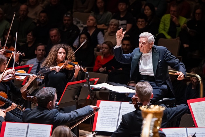 Вот этому импозантному мужчине на фото 97 лет. Пару лет назад он сильно травмировался, упав со сцены, поэтому теперь дирижирует сидя. Я был на его концерте в 2017 году во Франкфурте; свидетельствую, там он ни разу не присел за два часа.