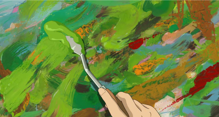 Кстати, на картине Моне изображена его жена Камилла. А героиня Миядзаки рисует что-то явно в стиле Моне:
