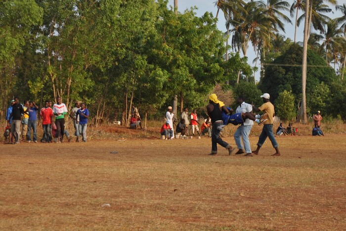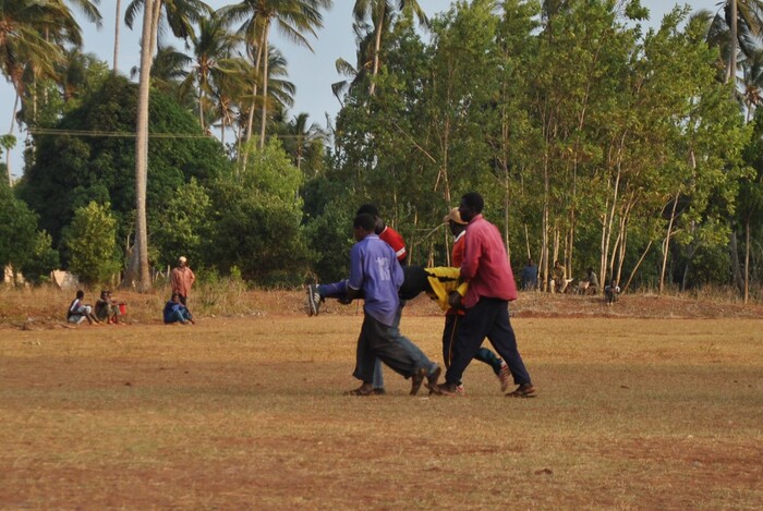 Основная масса зрителей расположилась на одной стороне поля, спиной к солнцу. На противоположной встало человек 20 ультрас, роль которых оказалась несколько значительнее, чем стучать в барабан и скандировать «судья — пидарас» на суахили. Например, когда кто-то из игроков получал травму, ультрас выбегали на поле и выносили тело: медиков на Занзибаре и на туристов то не всех хватает, не то что на любителей ногомяча из рыбацких деревень.