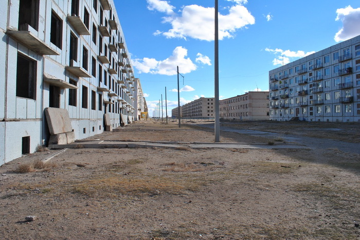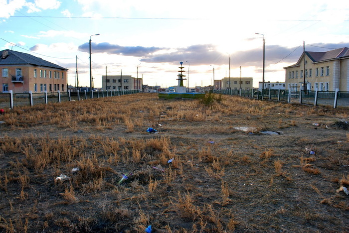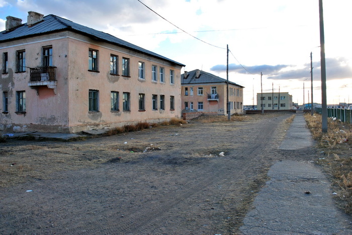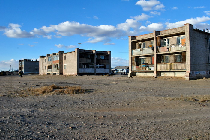 В блочных пятиэтажках стоящего неподалеку военного городка еще теплится жизнь. Монголы не могут позволить себе роскошь бросить добротные дома. Трудно представить, что нужно было натворить в прошлой жизни, чтобы в нынешней оказаться в Баянтале.