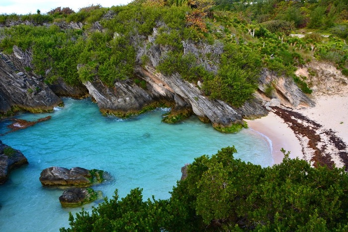 В первую очередь Бермуда — это такой райский остров, где давно уже перестали пропадать самолеты, с белыми пляжами и водой из клипартов. В марте тут зима (то есть вода и воздух по +20), поэтому самолеты с восточного побережья Америки летят полупустые, круизные лайнеры в бухты не заходят, местные на улицу выходят в пуховиках, а жизнь на бермудских пляжах представлена исключительно саргассами.