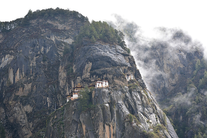 Последний хайлайт поездки — тигриное гнездо (вот прям Tiger nest, ага). Там какая-то мутная история то ли про орлицу, привратившуюся в тигрицу, то ли наоборот. В общем сейчас это монастырь в скале, до которого надо херачить по горам три часа строго вверх.