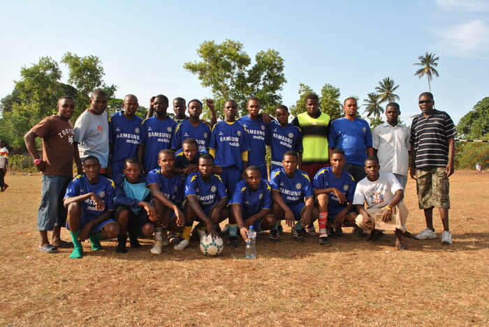 Выбирать за кого болеть не пришлось. В дополнение к радушному приему оказалось, что синие представляют ближайшую к моему отелю деревню Пвани Мчангани, а под восьмым номером за них играет отельный инструктор по виндсерфингу.