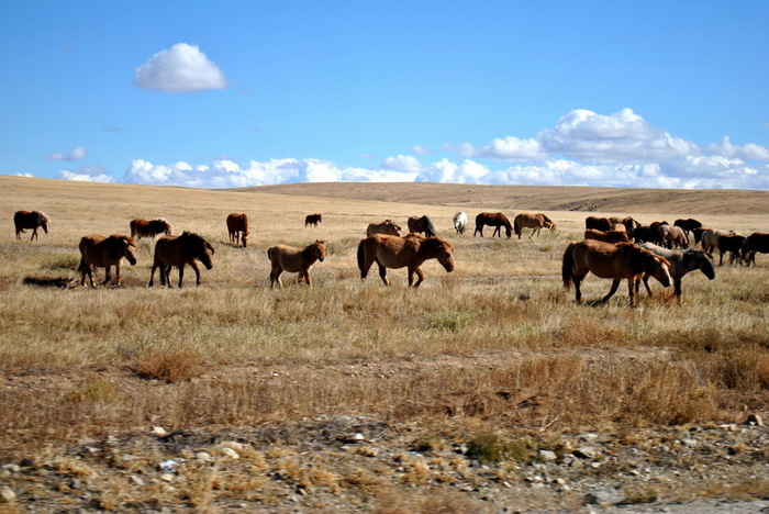 Во-вторых, повезло с погодой. Хоть солнечные дни для Монголии и не редкость, но на дворе был все-таки октябрь: уже на следующий после поездки день в Улан-Баторе шел снег. А тут синее небо, желтая степь да пасущиеся лошадки. Красота.
