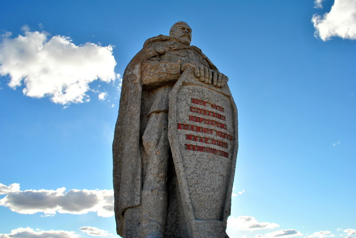 Памятник воину-освободителю рядом с разрушенным стадионом медленно умирает.