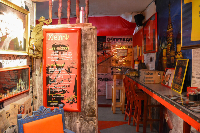 "Так вот же он", — говорю, показывая на вывеску у него за спиной.