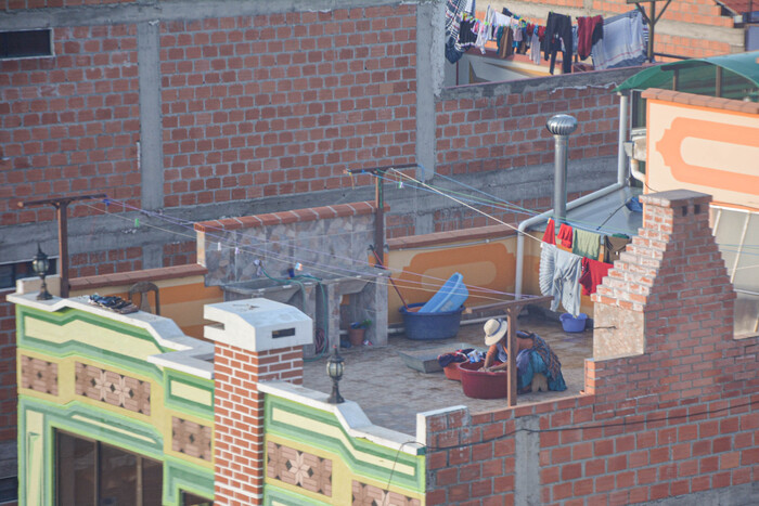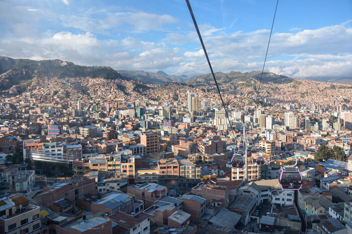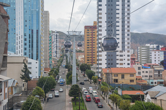 В крупнейшем городе Боливии Ла-Пасе один из основных видов общественного транспорта — система канатных дорог Teleferico, 8 веток общей протяженностью почти 30 км. Мало того, что это удобный способ перемещаться по огромному рельефному городу с перепадом высот под 500 метров, так еще и отличная туристическая развлекуха. Канатка покрывает все районы города, включая самые неблагополучные, и местами проходит так низко (иногда вообще между домами), что можно наблюдать сюжеты городской жизни, какие иначе увидеть трудно. Вот, например, кого-то в багажник закидывают.