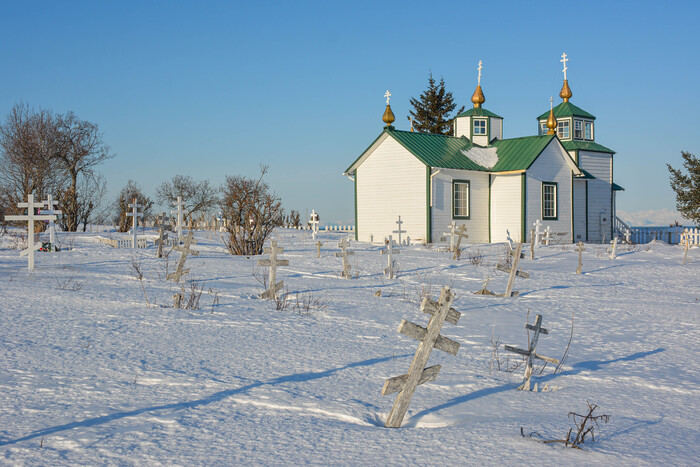 Поболтал с работающей на почте Ирой. Она родилась в Орегоне и никогда не была в России, как и заглянувший на почту муж ее сестры Дима, что не мешает им говорить по-русски почти без акцента, изредка вставляя слова вроде «музА/музёнок» (лось/лосенок) и «халибатить» (ловить палтуса). Ира переживает, что в Николаевской школе больше нет уроков русского, и что мужики пьют водку всю зиму пока нет рыбалки, а Дима – что ночью у его дома сорвало крышу, и надо будет все выходные чинить. А в остальном все нормально.