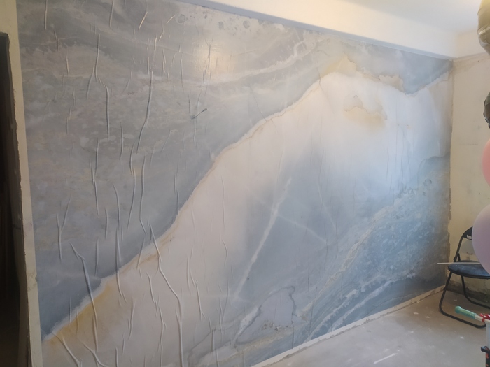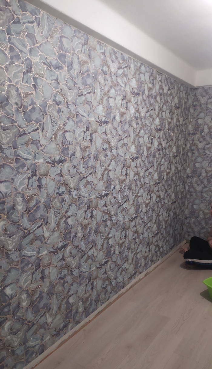 3. Бумажные обои - это ад для меня, наш ЭПИК фейл был с акцентной стеной в гостиной, мы заказали фотообои с рисунком разреза камня и наклеили их как было написано на этикетке, вот только они видимо не знают, что клей на бумажные обои надо мазать на обои, а не на стену, иначе трындец, будет как на фото, пришлось всё переделывать заново