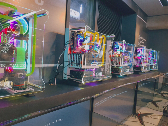 В PC-банах самые лучшие, современные, мощные, быстрые компьютеры с большими экранами, удобными кожаными креслами. Только взгляните на это фото.