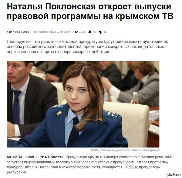 ucheniy Обязательно посмотрю этим вечером 11 лет назад информационный телевизионный проект "Встреча с прокурором", откроет программу прокурор Наталья Поклонская в качестве первого гостя. Наталья Поклонская Телепередача Крым Россия Прокурор Скриншот