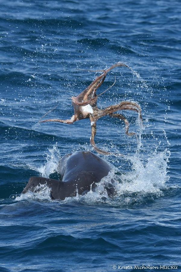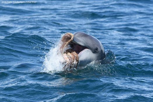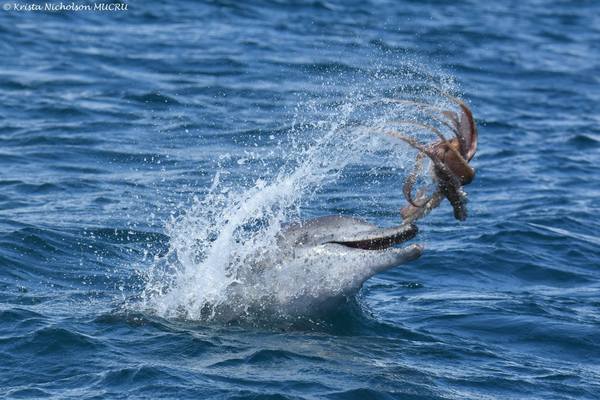 Криста Николсон, аспирант Университета Мердока (Австралия), сделала эти фотографии во время проекта по изучению дельфинов. Николсон отметила, что дельфин подбрасывал осьминога в воздух, используя нос. Это, определенно, была игра.