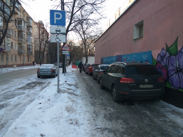Парковка на тротуаре, параллельно платной парковке