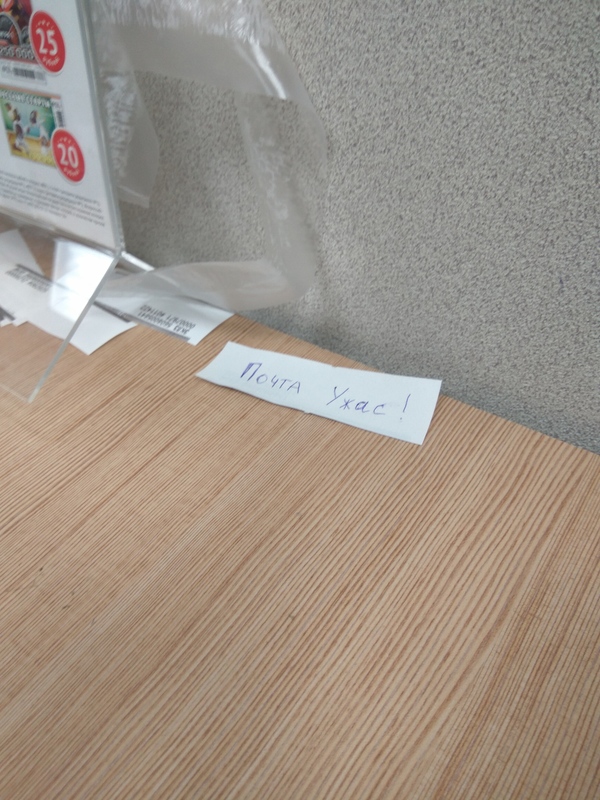С утра решил зайти за посылочками, накопил 4 простых и две с треком, жду пока моя очередь подойдет. В отделении два окна, но работает естественно только одно. Передо мной два человека, отправляют письма. Через 40 минут подошла моя очередь, отдаю извещения и слышу фразу - в следующий раз приходите после 10 часов( отделение работает с 8) а то мне прыгать за посылками некогда.... Когда оператор ушла искать мои посылки, замечаю на стойке вот такое послание :)))