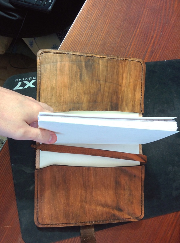 Красил антиком коричневым, чтобы выделить тиснение. А вторым и третим слоем - краска для кожи (зеленая, немного желтой).