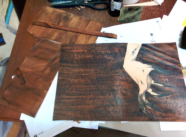 На этапе покраски я сглупил и начал красить (антик краской) не вынув глаза (и не включив мозг). ЙЙЙЕСТЕСТВЕННО почти все глаза я испортил. Краска затекла на краешки бумаги и я устремился рисовать новый комлект глазюк.