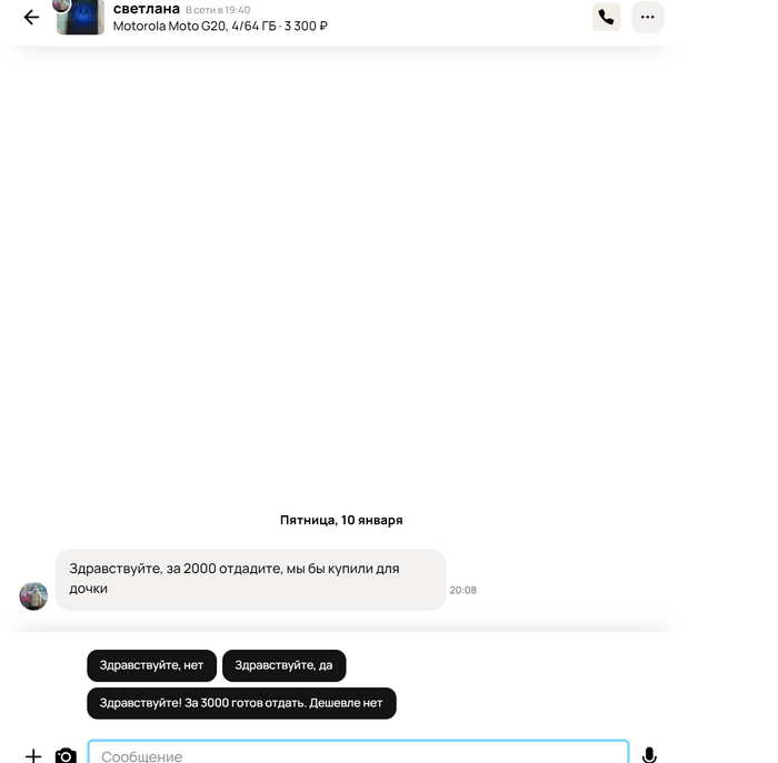 Раз в иногда, по мере покупки новых телефонов для членов семьи, приходится выставлять телефоны на Авито постоянно попадаю на сразузабиральщиков, но этот раз был как мне показалось интересен, и так получаю сообщение