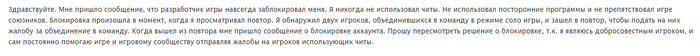 Сидел себе, спокойно играл. Все было как обычно. Встретил тимящихся ребят. Я ж за справедливость, спокойно пройти не могу. Не поленился, зашел в повтор, кинул по репорту каждому. Выхожу из повтора и мне прилетает сообщение.