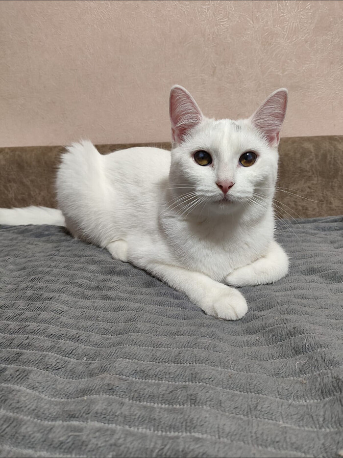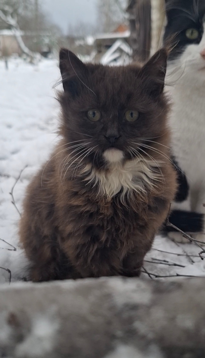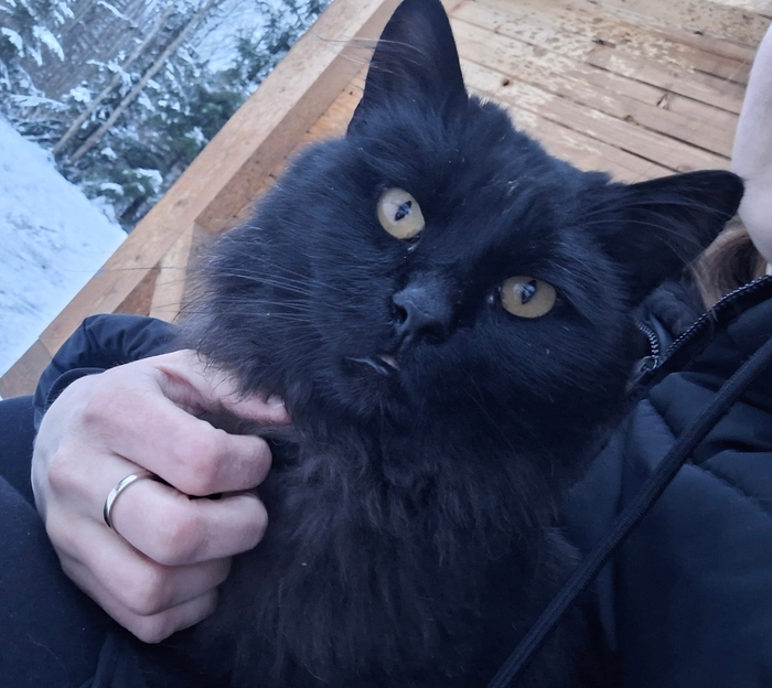 Сейчас это котик красавец, шерсть шелковистая с проседью, характер развесёлый- играть, скакать, хулиганить, это наше всё). Отлично ладит со всеми кошачьими, собак не боится.