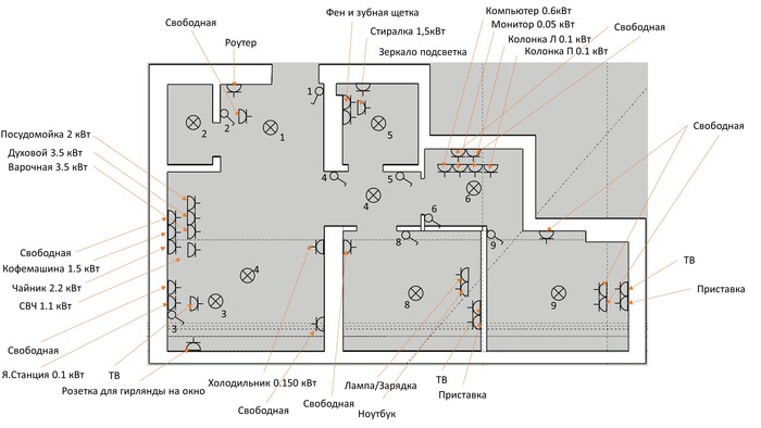 И по началу думал, что каждая комната своя линия ( конечно, делать на каждую розетку по автомату не вижу смысла, даже просто посчитать по нагрузке), и чем дальше, тем больше в думках. Прошу подсказать по количеству линий и по щитку( автоматы на линии и УЗО), уже штробу сделал под него с запасом, а то рабочие гонят меня(решил шпатлевание и кафель нанять рабочих сам не успею, а хочется под нг уже переехать), т.к. им шпатлевка, а у меня электрика не готова))