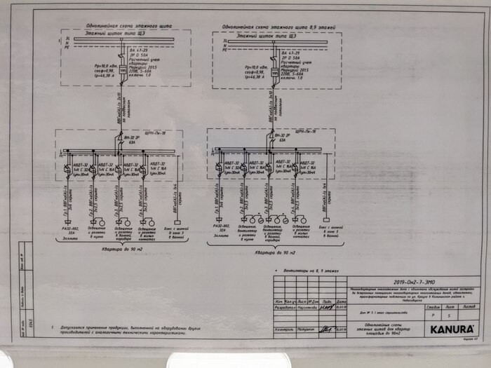 Потом решил глянуть, что там в этажном щите, а там однолинейная схема, интересное название, кто проектировал :)