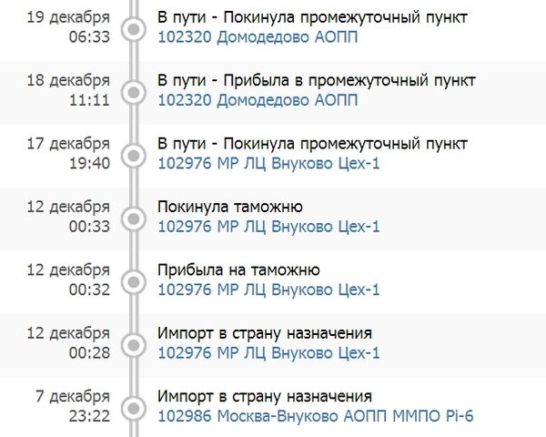 12 дней. Двенадцать. И это только в одной Москве. Но, ладно, черт с этой посылкой. Тут таможня виновата. Наверно. Смотрим дальше.