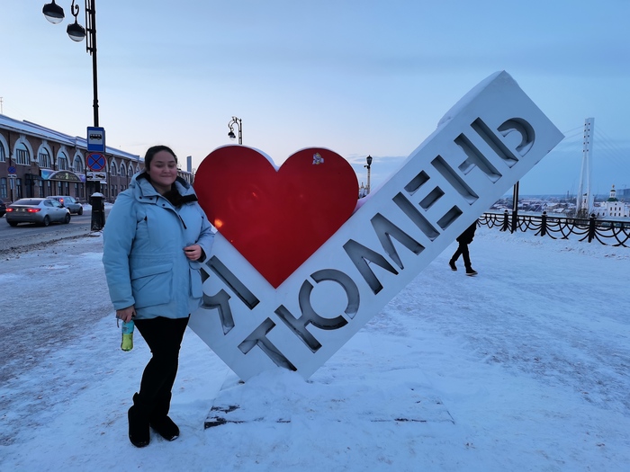 А зимой ездила в Тюмень, было аж -26°С! Люблю морозы! А еще вечно когда меня фоткают, я моргать начинаю))