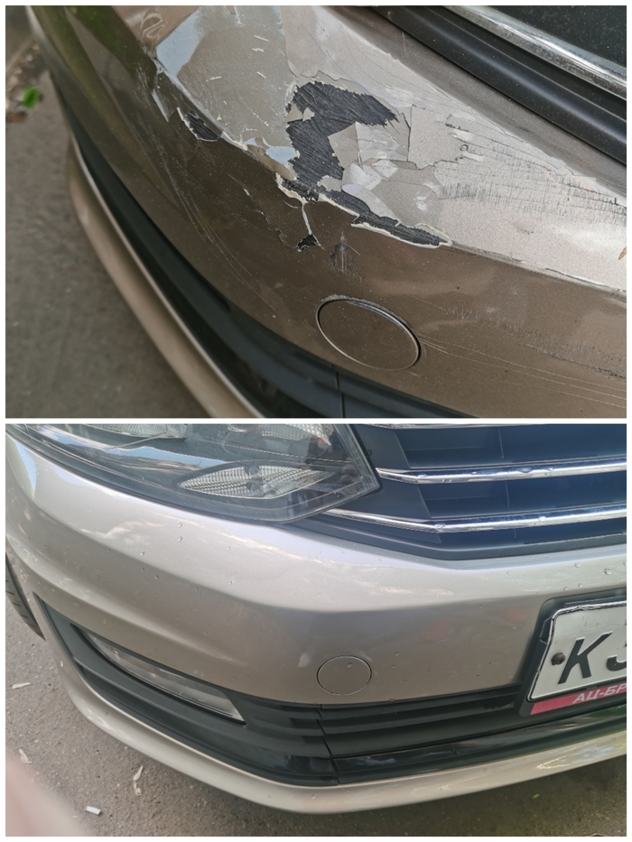 На днях нам машину помяли. Стояли в макавто в очереди и чувак просто съехал нам в бампер. Но все благополусно решили. Виновник оказался порядочным)