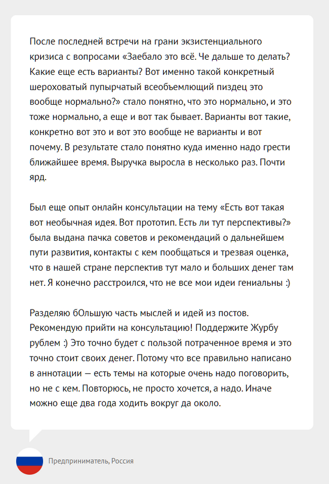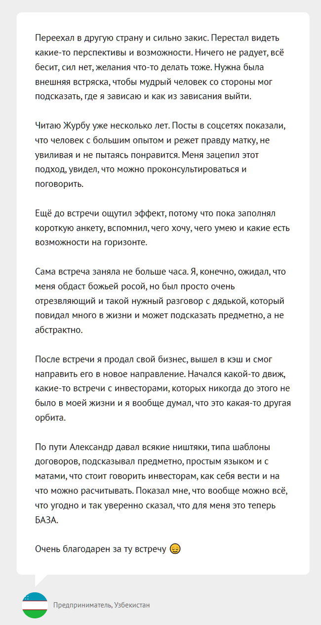 С 2006 года я занимаюсь инвестициями в частные компании различных отраслей и стадий развития (80+ инвестиций на 200+ млн. долларов), и общаюсь с большим количеством самых разнообразных людей по самым разным житейским, бизнес- и инвест-вопросам (1000+ консультаций). Коллекционирую деньги, опыт и связи, в общем.