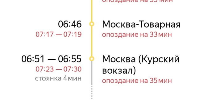 Собралась спонтанно жена с детьми на дневную поездку во Владимир. Музеи там всякие, места красивые. Купили билеты на Ласточку в 7.15 туда, вечером обратно плацкарт - детям интересно на поезде покататься. Живём в Подольске и до Курского понятно электричка с запасом на 20 минут на пересадку. Но это ЦППК. В 5.50 звонит жена - поезд "задерживается", спасай. Это хорошо, что живём рядом со станцией и машина есть... В 6 утра в субботу за 45 минут довёз, а так бы билеты туда-обратно на 5К пропали бы. Электричка опоздала на 33 минуты в итоге. Вернувшись с Москвы зашёл в кассу поругаться с попыткой сдать билеты и, ожидаемо, был послан, хоть и вежливо, в пешее эротическое... Дескать раз опоздание меньше часа, то все ОК. Ненавижу ЦППК! Билеты отдал в очереди в кассу, с недоверием, но взяли.