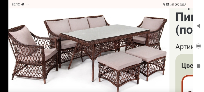 Связались с менеджером, попросили фото, что бы убедиться, что ротанг действительно круглый. Всё сошлось, и даже подарок пообещали! Берём! Оплатили счёт, несколько дней ожиданий в предвкушении долгожданный покупки и вот смс от перевозчика, приходи забирай! Делаем доставку открываем упаковку и видео, что пришло не то. Ну как не то, сама мебель, то что нужно, а вот подушки, матрасики ну совсем не то (цвета брезент)