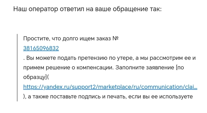 Мы составляем два обращения на компенсацию , которые Яндекс Маркет отклоняет с одной и той же формулировкой.