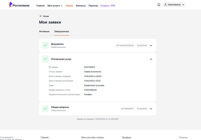 10.06.25 решил я отключить домашний телефон, ибо нефиг платить за воздух. Создал заявку, пообщался с ботом.. В общем, 11.06 её выполнили, а 17-го уже исполнили.