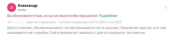 В Авито пробовал обжаловать отзыв, пишут что нарушений нет...