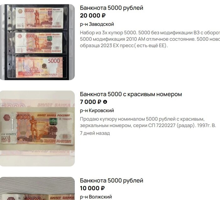 Таких объявлений сотни, тысячи на этой платформе. Есть специальная категория товаров - "Банкноты". Есть графы для описания этих "товаров", вроде "красивый номер"...