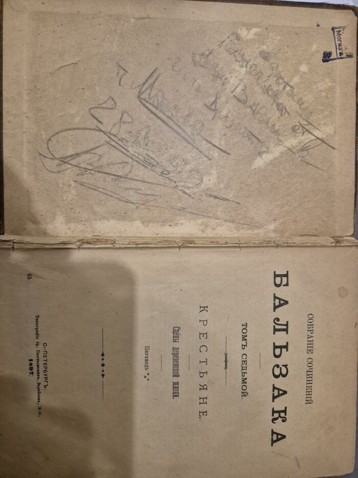 2 Бальзак 1897 года с надписью от руки в потрепанном состоянии.