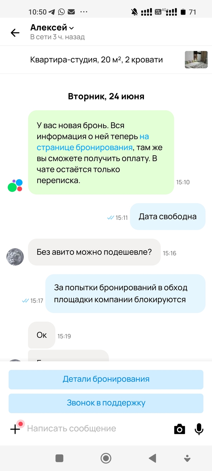 И вот... 24 июня 2025 года приходит бронирование на Авито.