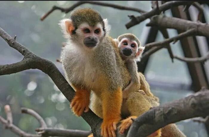 Саймири живут в шумных группах до 100 особей! Постоянное щебетание, беготня, забота о малышах — у них всегда кипит жизнь.