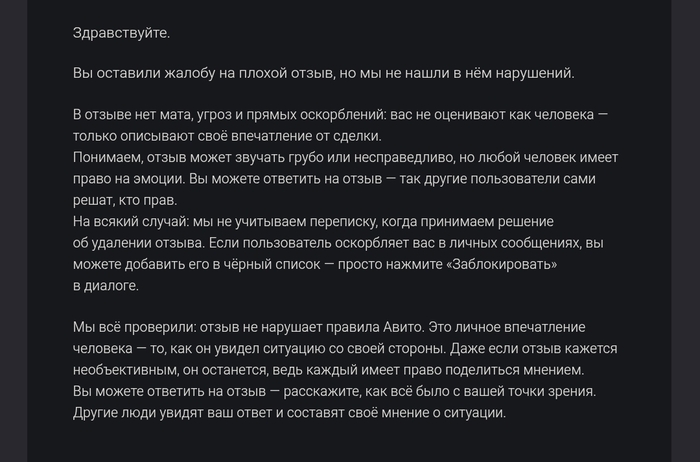 Почти 3 суток как прошло в публикации поста о том что Авито осознано пускает отзывы левые честным аккаунтам , явно видя и понимая все доказательства. Это пол беды, они читают тут пост и просят написать на почту. Пишу на почту через буквально 3-5 мин. И что ?... И ничего просто тишина уже 3 суток , ничего не удалено , ничего более того даже не отвечено от их мега службы.