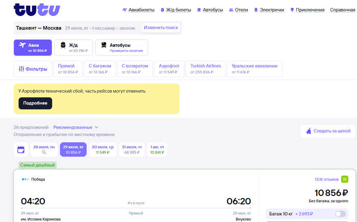 Из Тобольска в Москву лететь на 700 км меньше чем из Ташкента, и при этом билет дороже.