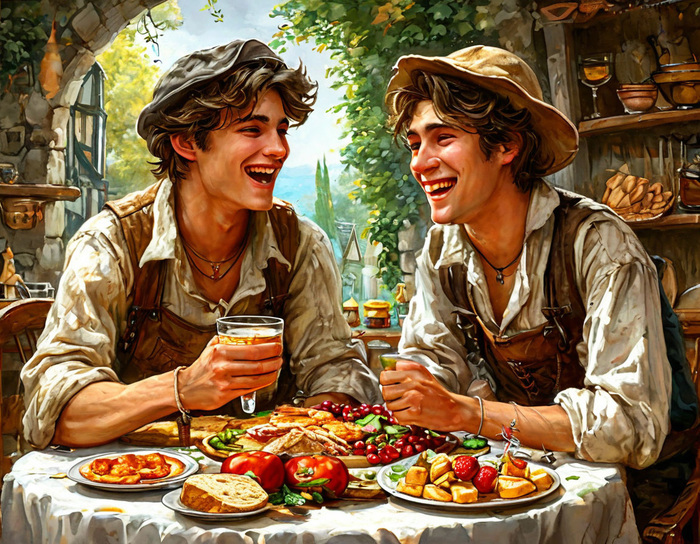 В одном далеком, туманном королевстве, где время текло медленно, как река в ясный день, жили два брата — Астор и Алмис. С юных лет они были известны как бездельники, не желающими трудиться и бездумно проводящими время в лентяйстве и праздности . Их старые родители, заботясь о своих детях, долгое время содержали их, надеясь, что однажды оба осознают, чего стоят и познают труд и ответственность. Однако с каждым годом надежда угасала, а их жизнь оставалась такой же ленивой и бесцельной.