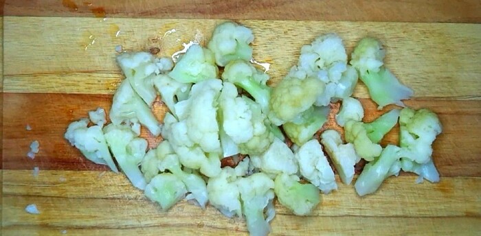 1.Крупные соцветия цветной капусты, разрезаем на более мелкие(капусту можно использовать свежую или замороженную)