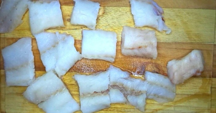 6. Рыбу обваливаем в крахмале, выкладываем на разогретую сковороду с растительным маслом. Обжариваем с двух сторон до золотистости. И убираем со сковороды.