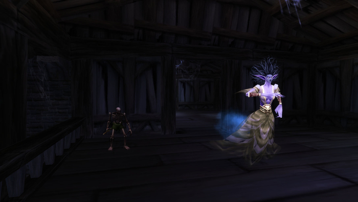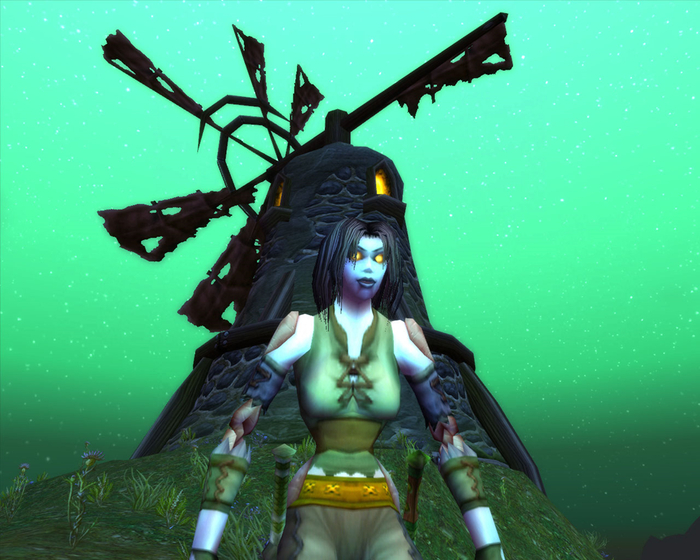 У первой она задержалась, чтобы осмотреться. Как и всё в Тирисфале, мельница была запущена и полуразрушена. Крылья скрипели на ветру, обрывки парусов развевались по воздуху. Тормоз был отпущен или вовсе разрушен, но лопасти стояли под плохим углом к ветру, и только раскачивались. Некому повернуть крышу по ветру, чтобы лопасти стали вращаться, поэтому ветряк пронзительно скрипел. Этот звук долго преследовал Виолетту по ночам, вырывая из сна, не давая покоя в самых защищённых крепостях. Но это только будет, а пока она заглядывала в каждую мельницу в поисках Агамондов. Везде были только скелеты батраков. Много скелетов. Они караулили мельницы, обходили дозором холмы. Чем дальше Виолетта продвигалась, тем сложнее было идти. Свободного места оставалось всё меньше, ей приходилось всё больше и больше петлять, батраки всё чаще останавливались и пристально всматривались в тени, где им почудилось движение. Это будет очень трудный заказ. Возле мельницы с единственной уцелевшей лопастью Виолетта сделала привал, спрятавшись в кроне осины. Её заинтересовал дюжий малый, полугнилой вурдалак, обходивший ближайшие мельницы и покрикивавший на остальных. Какой-то начальник, а может, один из Агамондов. Очень крупный, в его тело две Виолетты влезут. Доспехов нет, одежда истлела, но размер пугал. Пока она разглядывала да соображала, как можно убить такого противника, один из батраков обратился к нему «господин Грегор». Ага! Грегор Агамонд, глава семьи. Один есть. Но нападать она сейчас не будет, рядом много батраков. Продолжим разведку. Рога уже видела впереди зернохранилища и большой жилой дом, а скелетов стало столько, что даже в кустах она рисковала быть обнаруженной. Забравшись под разбитую телегу, Виолетта рассматривала площадь, по краям которой расположились основные постройки хозяйства Агамондов. Целый ряд зернохранилищ обслуживался толпой скелетов, которые перекладывали с места на место мешки, не обращая внимания, что из дырок на землю просыпается заплесневелое и засохшее зерно, табак, сухая краска. На складах прилежно подметали полы и протирали пыль, по площади ходили зомби с мётлами. Агамонды вели привычный образ жизни, не замечая, что замкнулись в повторении одних и тех же действий. А вскоре девушка убедилась, что выбрала правильное место для наблюдений. Жилой дом был центром всего поместья, от него до амбаров постоянно ходил скелет в хороших кольчужных доспехах, вооружённый шипастой дубиной. Либо кто-то из доверенных слуг, либо кто-то из братьев Агамондов. В любом случае, его нужно устранить. На примере гноллов Виолетта знала, что если лишить Плеть командиров, то рядовые мертвецы очень быстро разбредаются по своим делам, и ей будет намного легче добивать остальных. «Командир» часто заходил в амбар, в котором, по наблюдению Виолетты, было мало батраков. Можно попробовать.