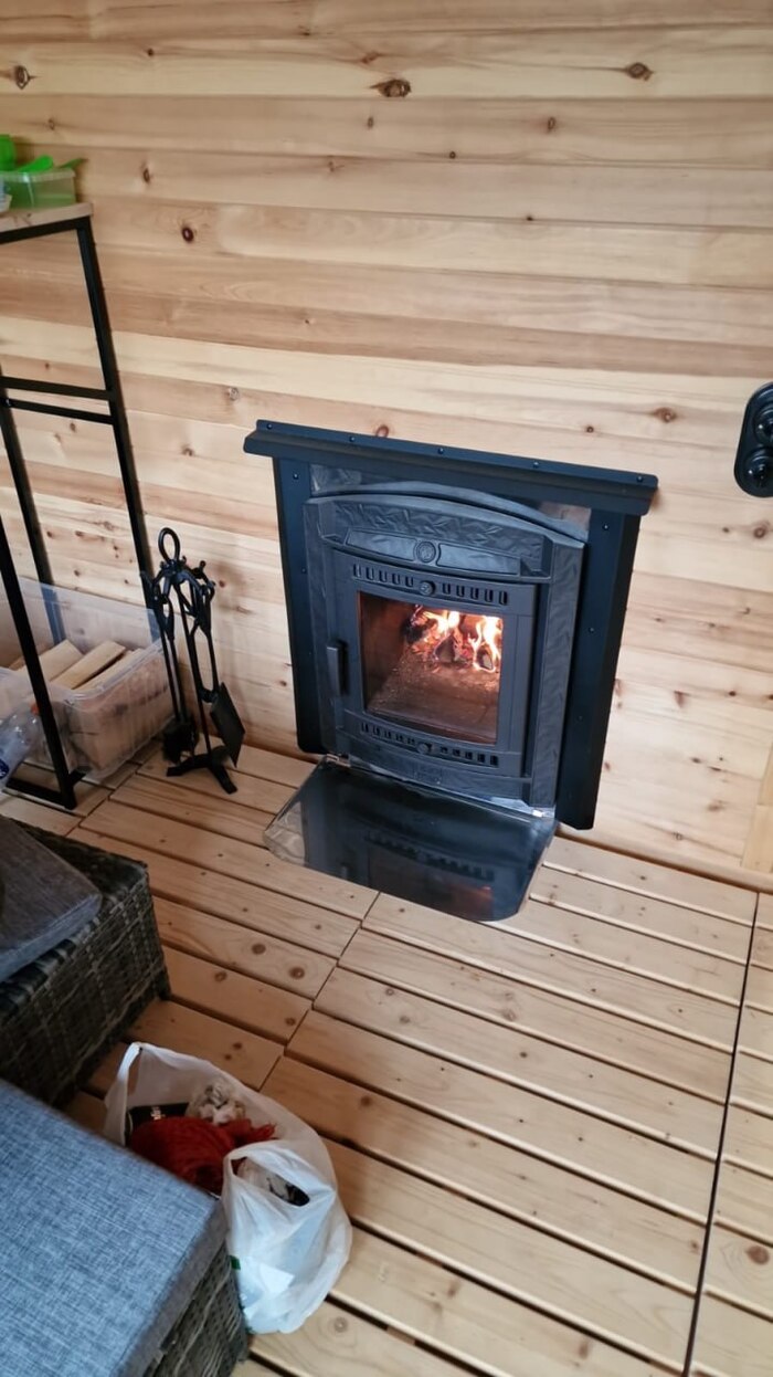 Особое внимание стоит уделить печи. Она чугунная, а окно как у камина, здоровенное. Тупо посидеть у такого камина в тишине - уже наслаждение.