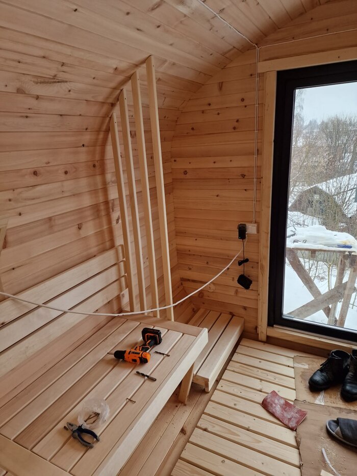 После покупки "коробки" дома, проезжал по М-3 около Москвы и случайно набрёл на выставку бань-бочек. Современно, стильно, интересно. В общем это была любовь.