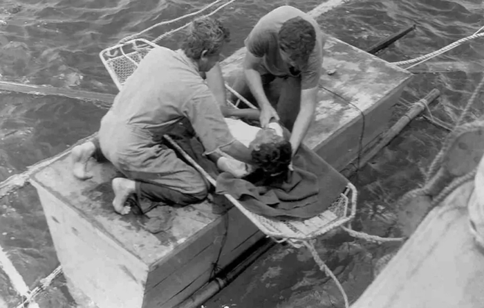Это означало, что выжившие вынуждены были наблюдать, как многие из их товарищей медленно уходят из жизни. Как только они узнавали о смерти, они старались оттолкнуть тело, чтобы запах разложения не привлекал акул.