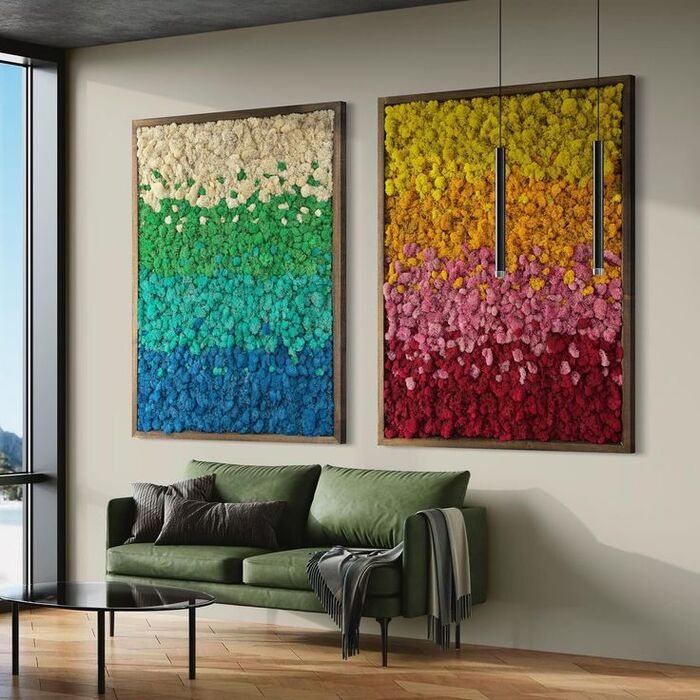 Мох бывает более чем в 30 оттенках — от глубоких природных до ярких декоративных.