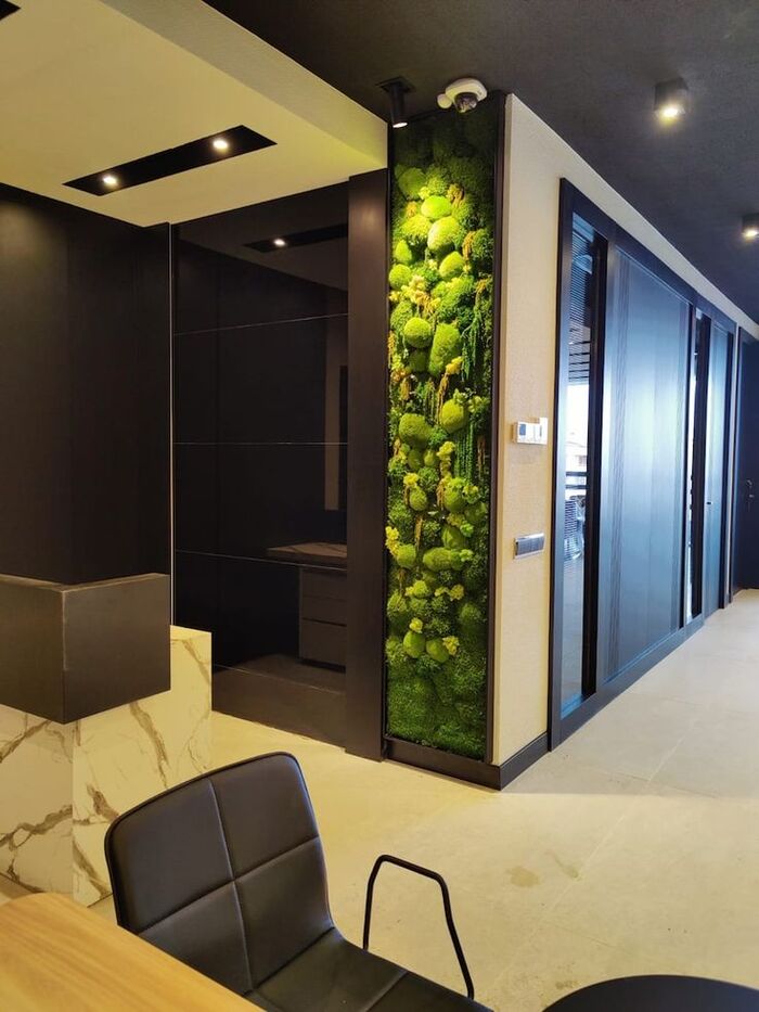 А ещё панели из мха — это дополнительная звукоизоляция. В открытых офисах или при работе из дома это особенно ценно: мох «глушит» посторонние звуки и делает атмосферу тише и спокойнее.